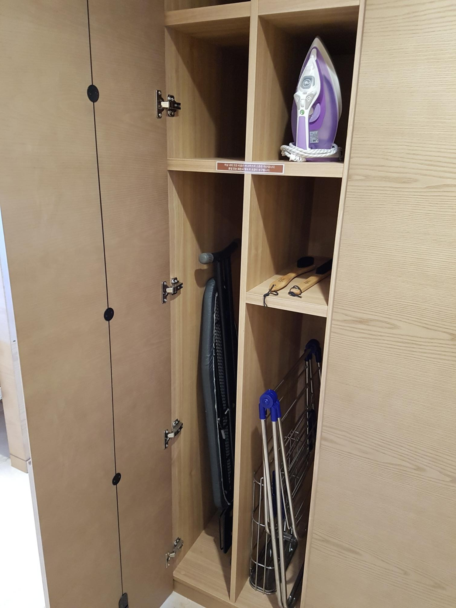 다리미와 구두솔, 다리미판, 건조대 등이 현관 옷장에 있고요.
