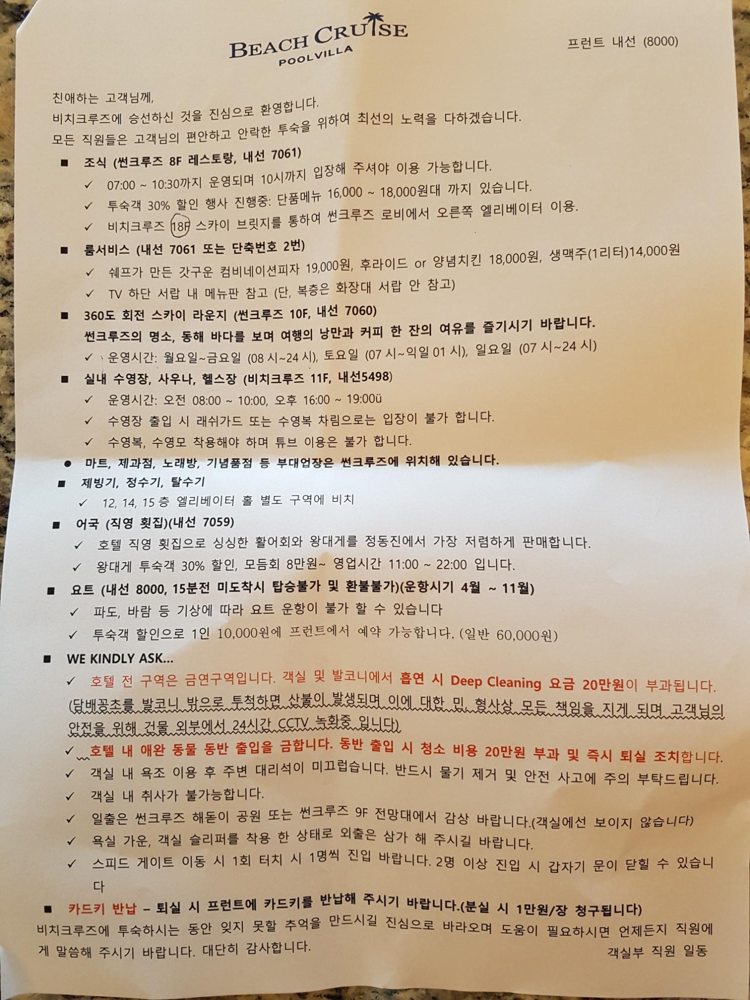 정동진 비치크루즈호텔 숙박자들을 위한 가이드인데요.