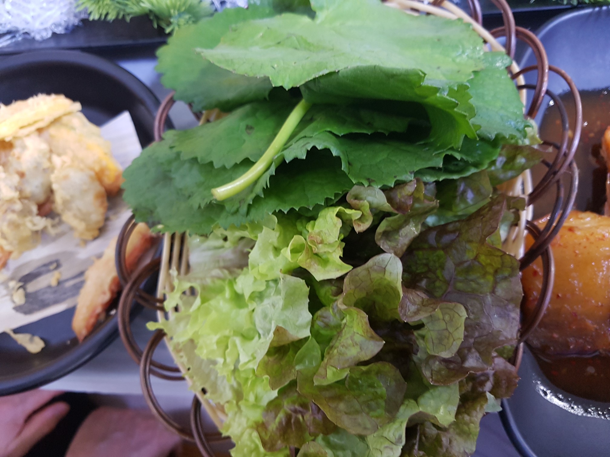 상추 및 이름을 알 수 없는 야채들이 신선 그 자체랍니다.