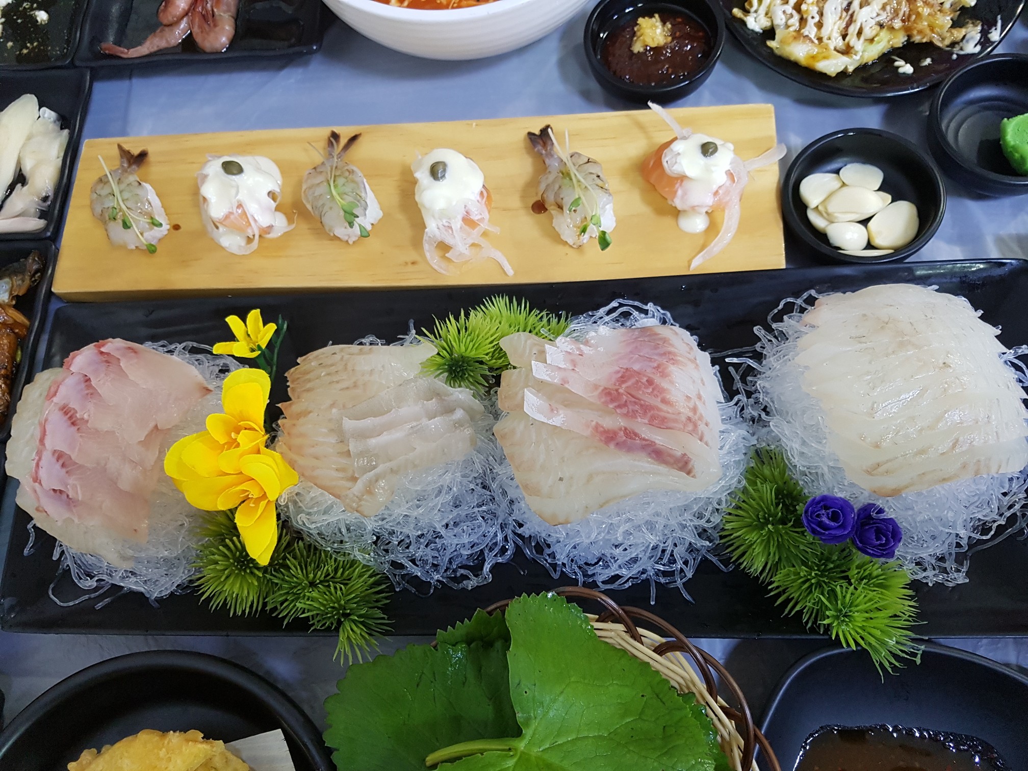 여러 물고기들을 회쳐서 나온 회와 초밥은 예술 그 자체라 할 수 있었어요.