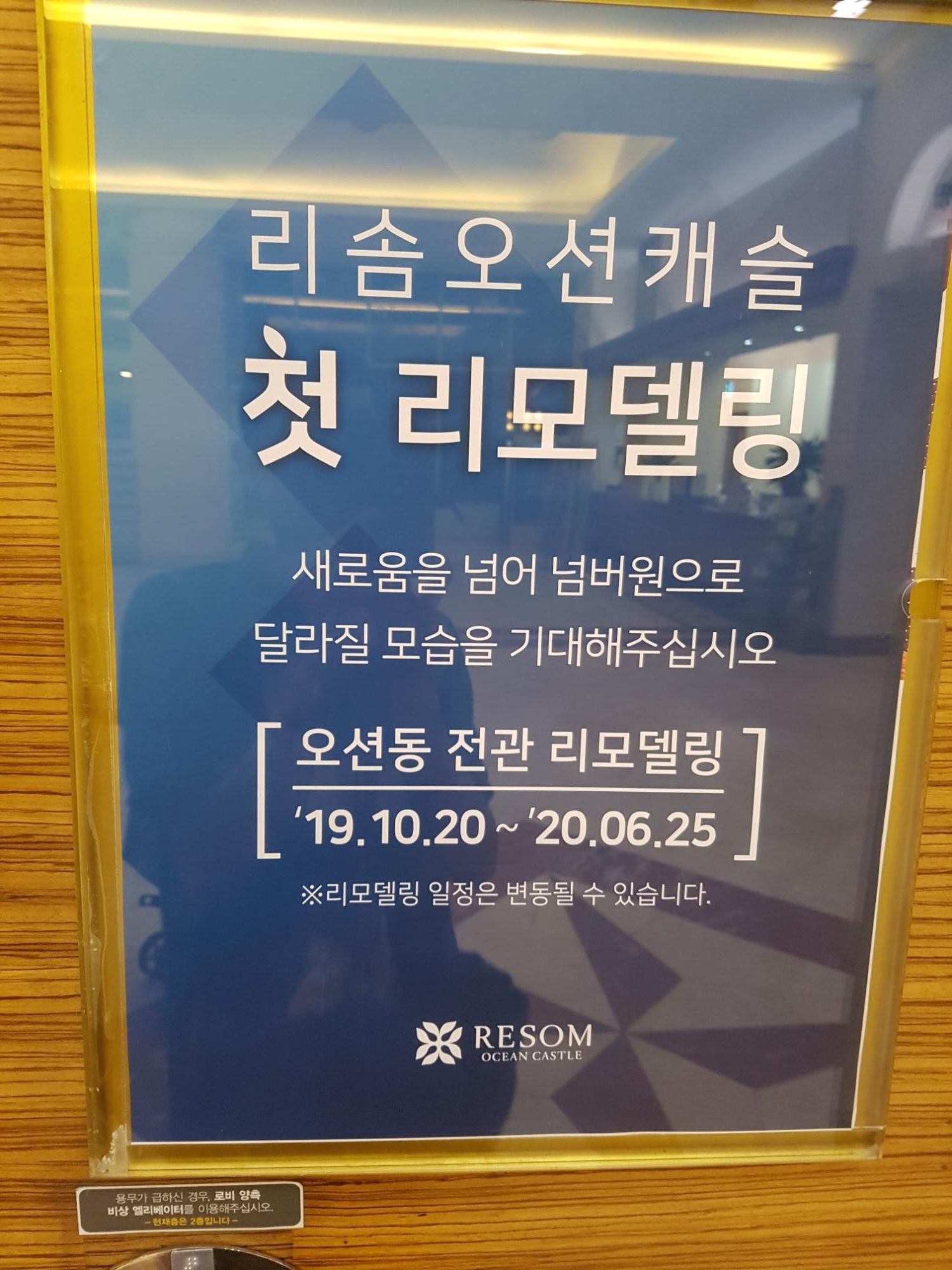 제목에서도 말씀드렸듯이, 태안 리솜오션캐슬은 19년 10월 20일부터 20년 6월 25일까지 오션동 전체가 리모델링 된다고 합니다.