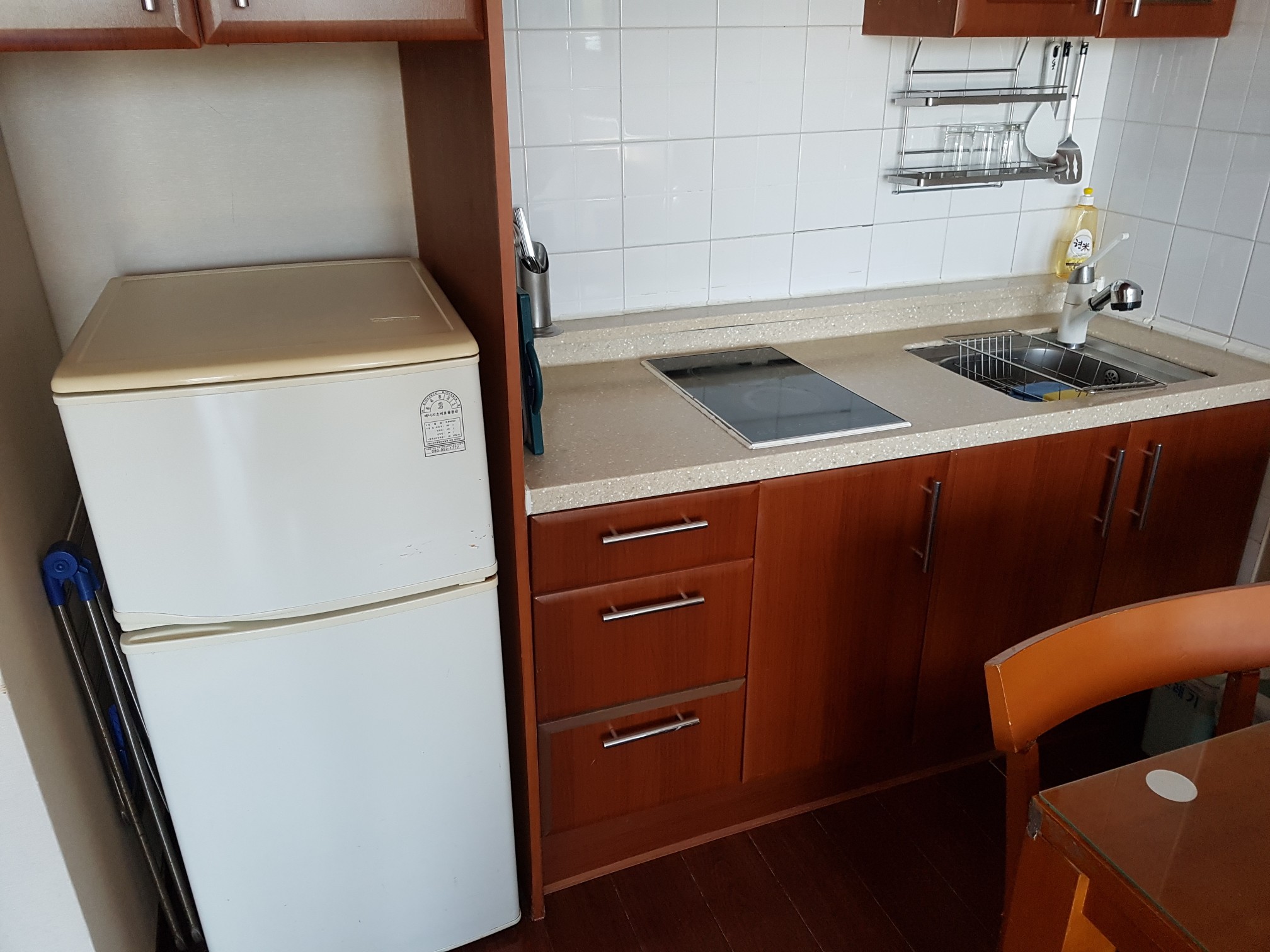 인덕션과 전기밥통, 취사를 할 수 있는 곳이라서 음식을 잘 하시는 분들은 이곳에 머무시는 것도 좋아 보여요.