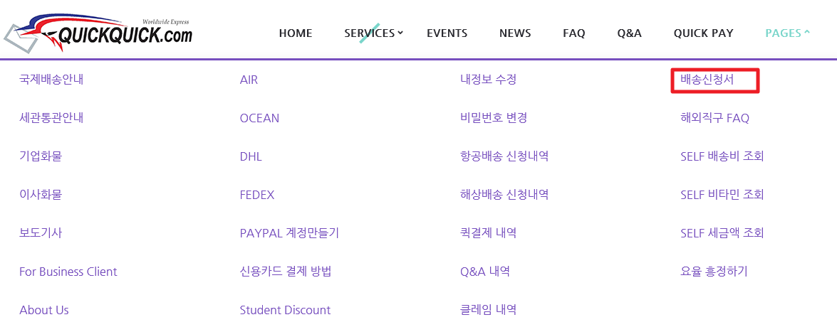 오늘은 해외직구사이트 퀵퀵닷컴 배송신청서 작성에 대해서 포스팅해 보려 합니다.