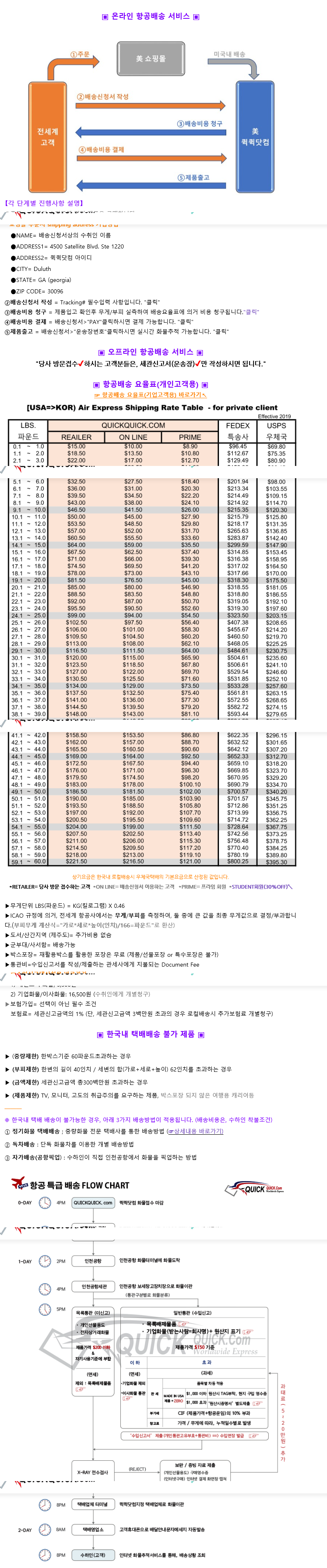 퀵퀵닷컴의 온라인 항공 서비스의 개략도와 항공배송 요율표랍니다.