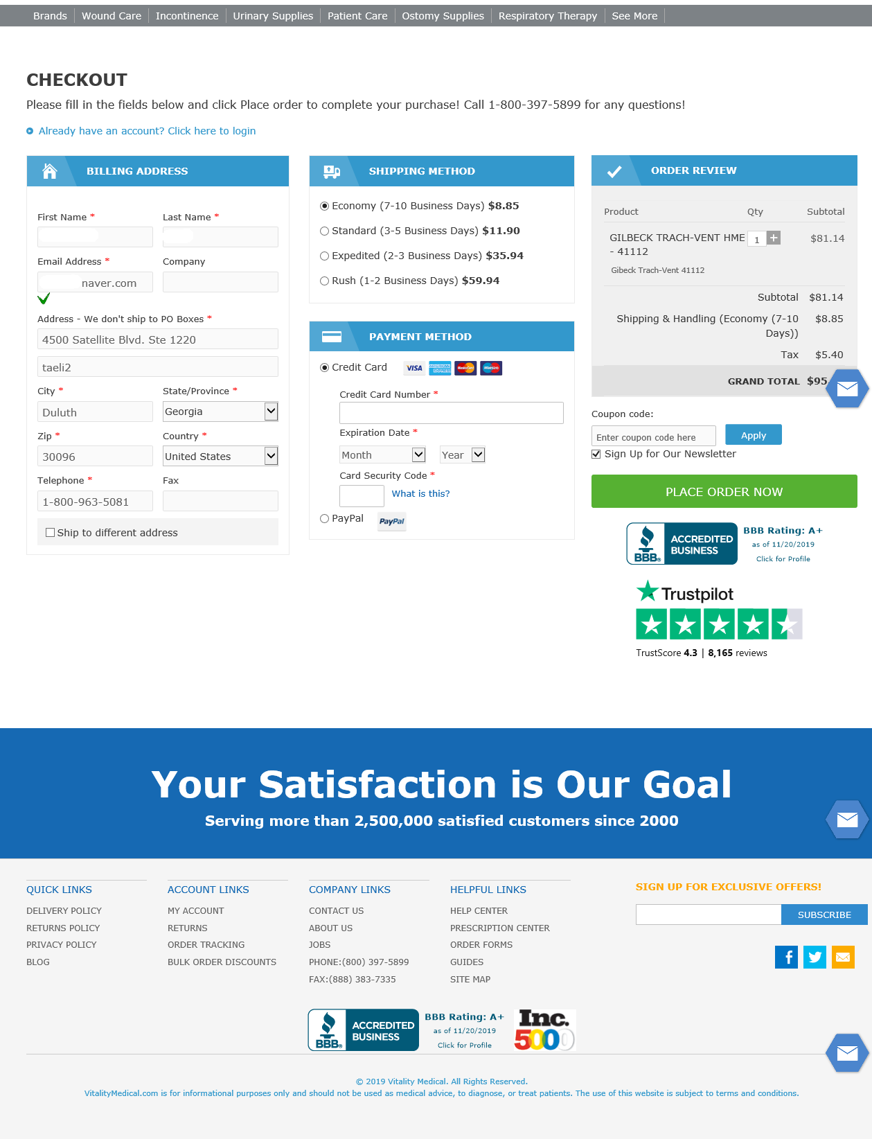 제가 이용하는 미국의 의료용품 쇼핑몰 바이털리티 메디컬에서 상품을 주문했어요.