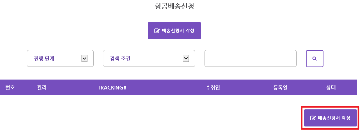배송신청서 작성을 클릭합니다.
