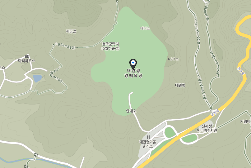 평창군 대관령면 대관령마루길 483-32 에 있고요.