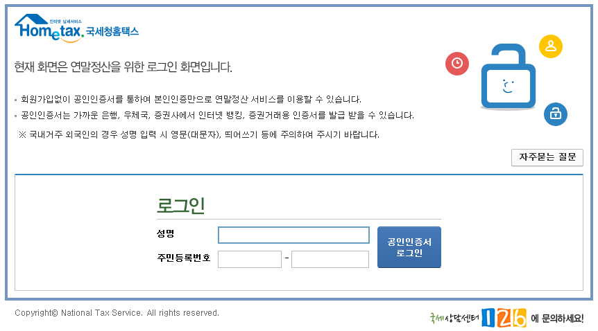 회원가입없이 공인인증서를 통하여 본인인증만으로 연말정산 서비스를 이용할 수 있답니다.