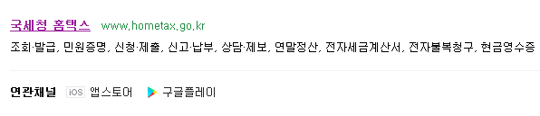 인터넷 검색창에서 국세청홈텍스라 검색하시면 위와같이 결과가 나옵니다.