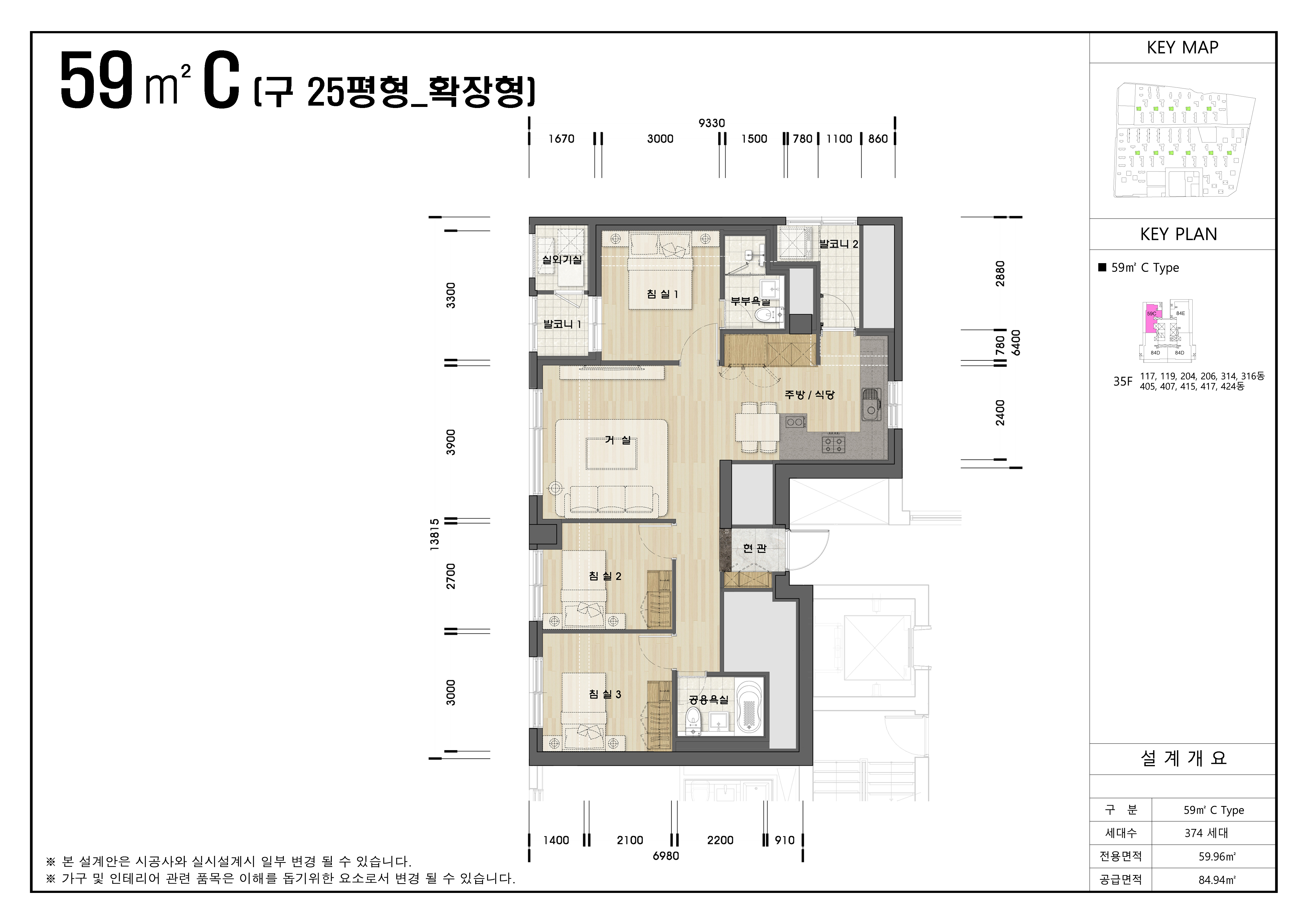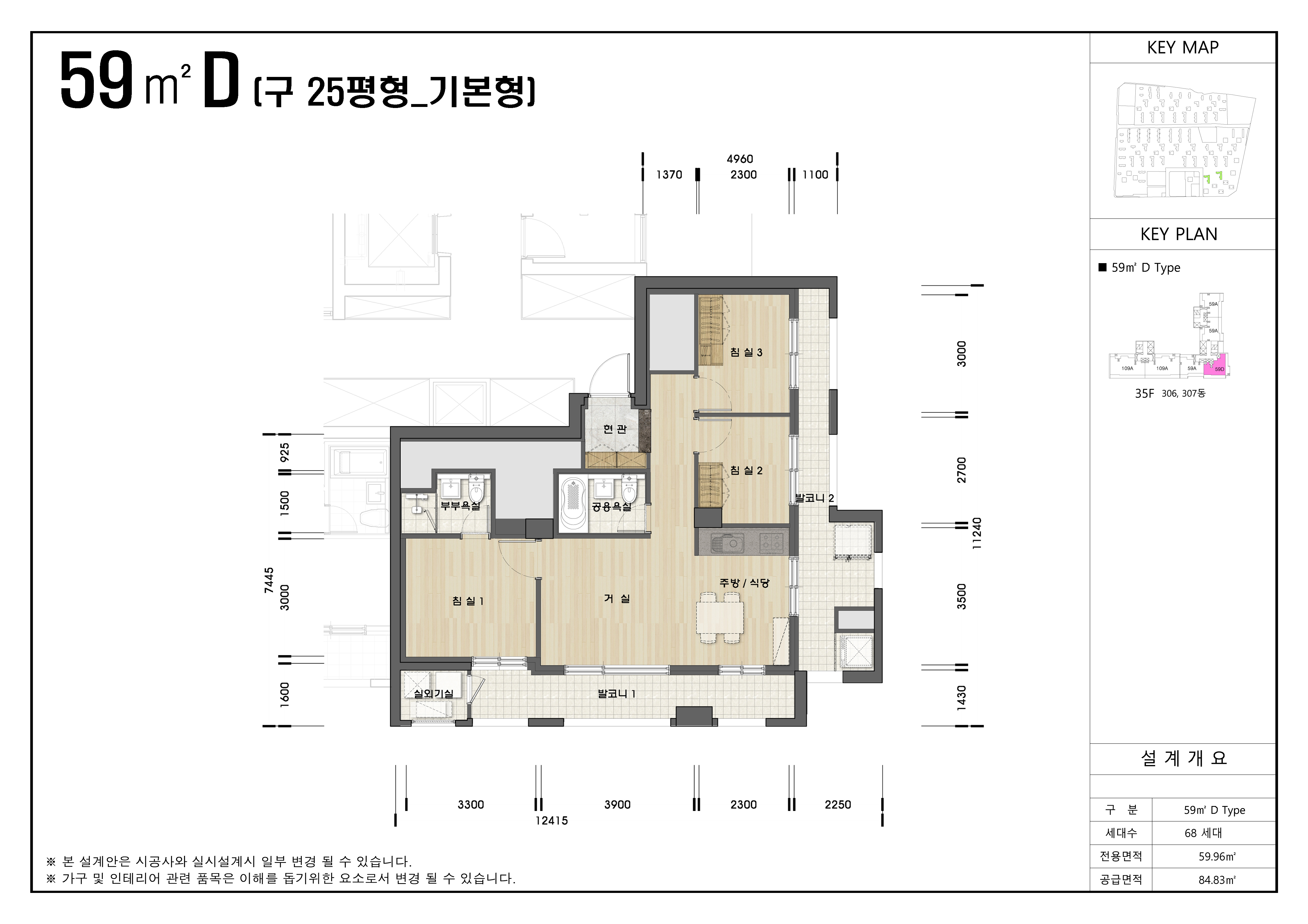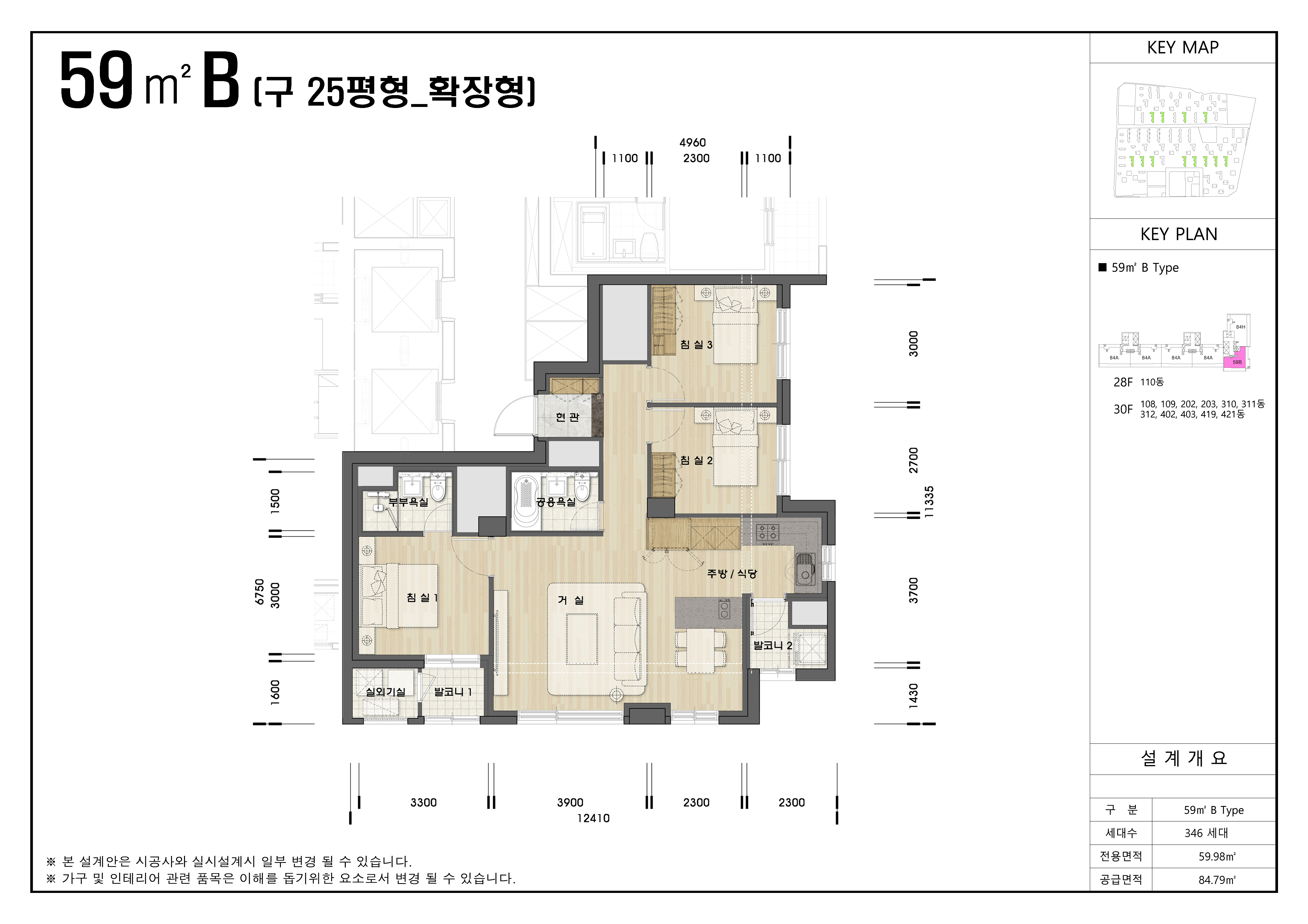 1238세대로 꽤 많은 비중을 차지하는 평형과 타입입니다.