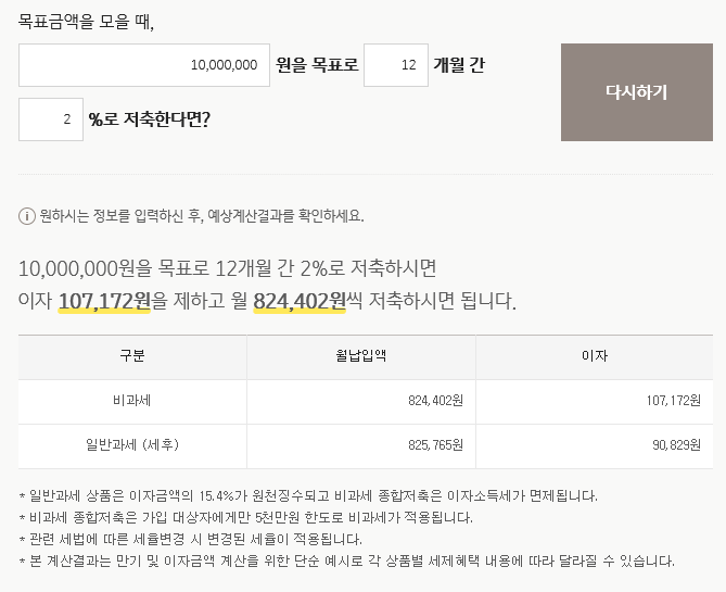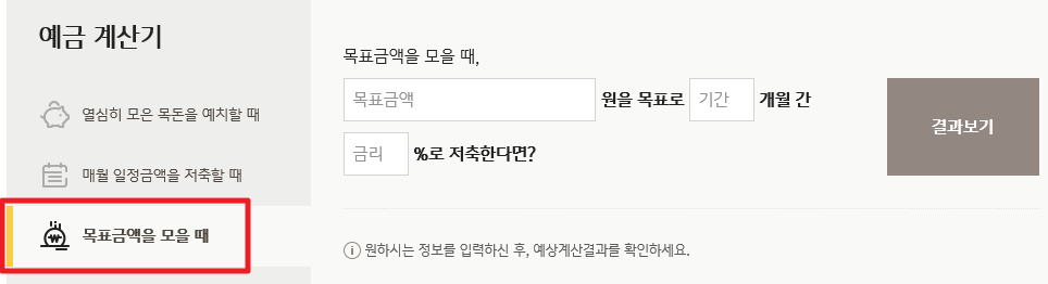 목표금액을 설정할 때 얼마의 저축 금액을 넣어야 하는지도 계산할 수 있는데요.