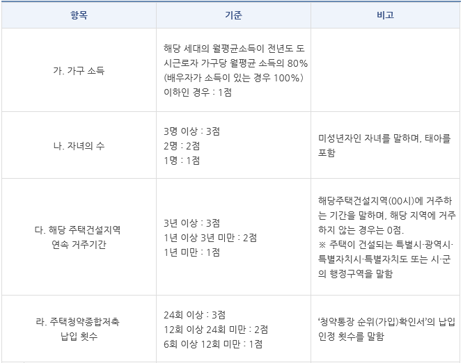 - 공공분양주택 당첨자 선정 기준입니다.