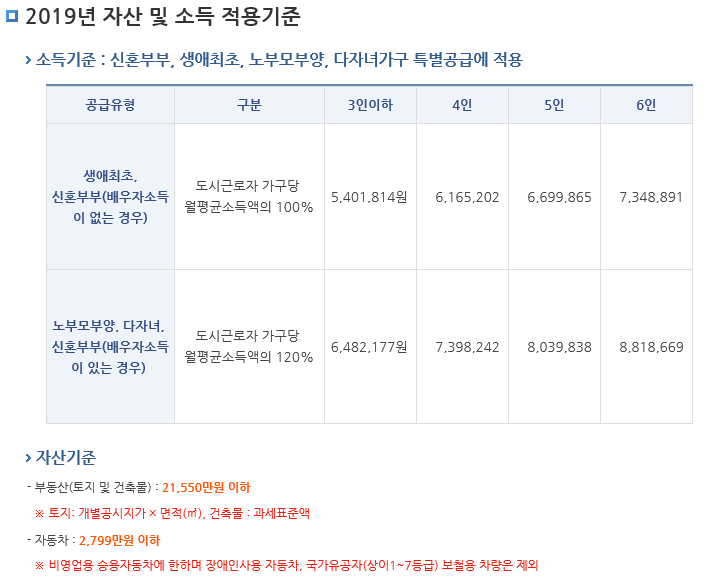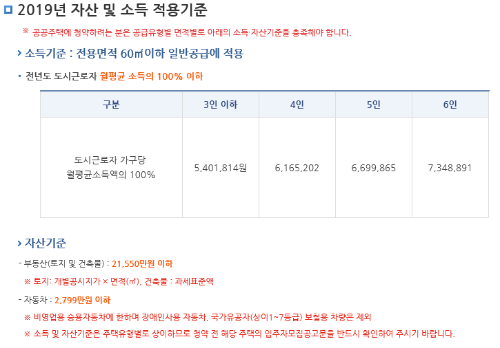 - 공공분양 자산기준 및 소득기준입니다.