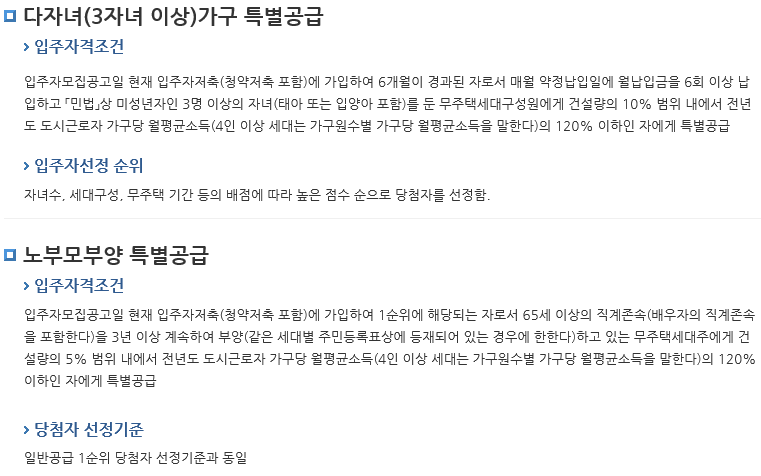 3. 노부모부양 특별공급 입주자격조건