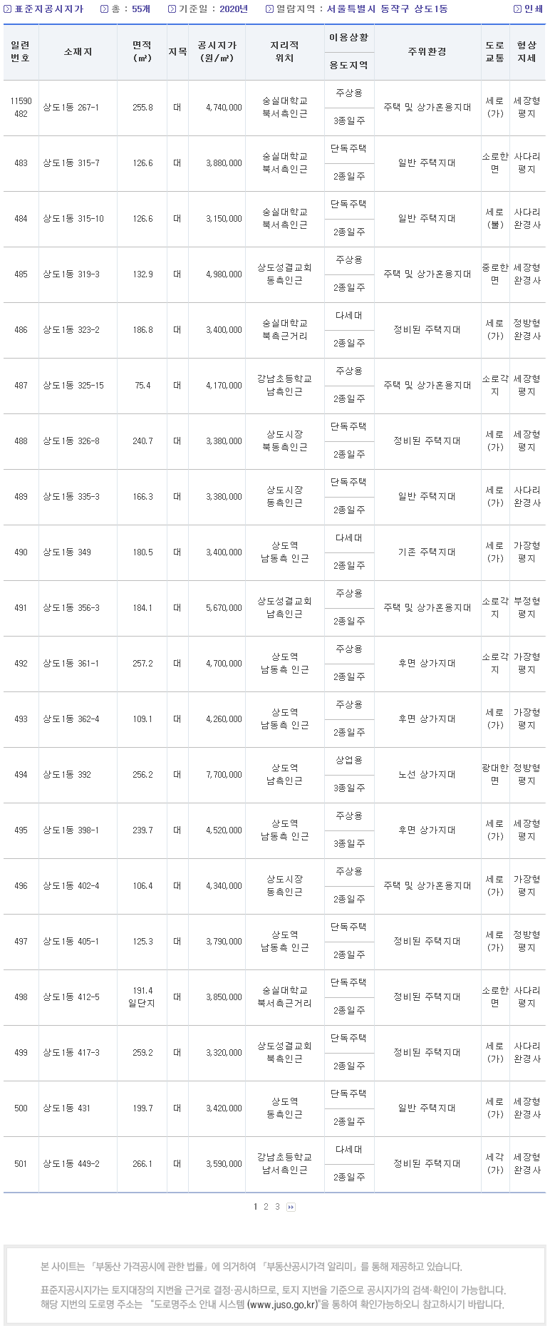 일례로 저희 동네 표준지공시지가를 조회해 봤어요.