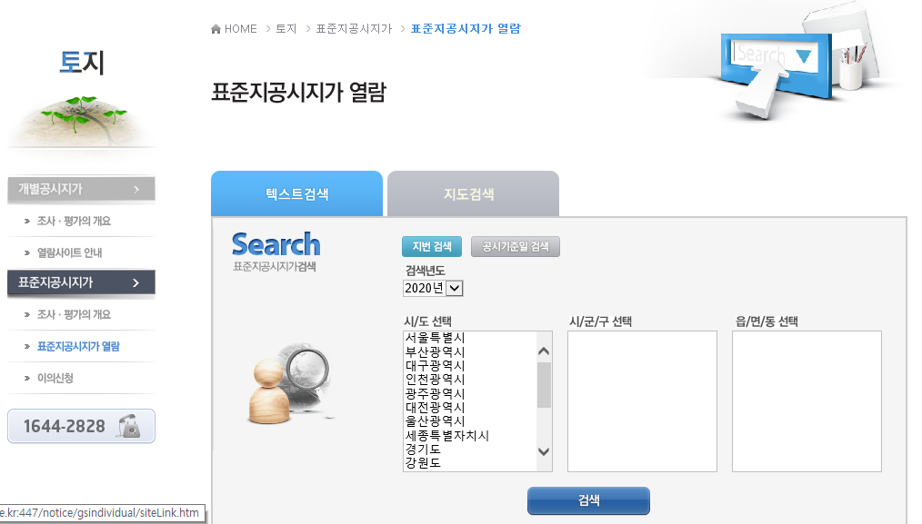 표준지공시지가는 토지대장의 지번을 근거로 결정 공시하므로, 토지 지번을 기준으로 공시지가의 검색 및 확인이 가능하답니다.