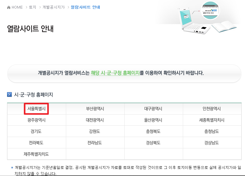 개별공시지가는 인터넷 검색창에서 공시지가조회 또는 부동산공시가격 알리미를 검색하시면 된답니다.