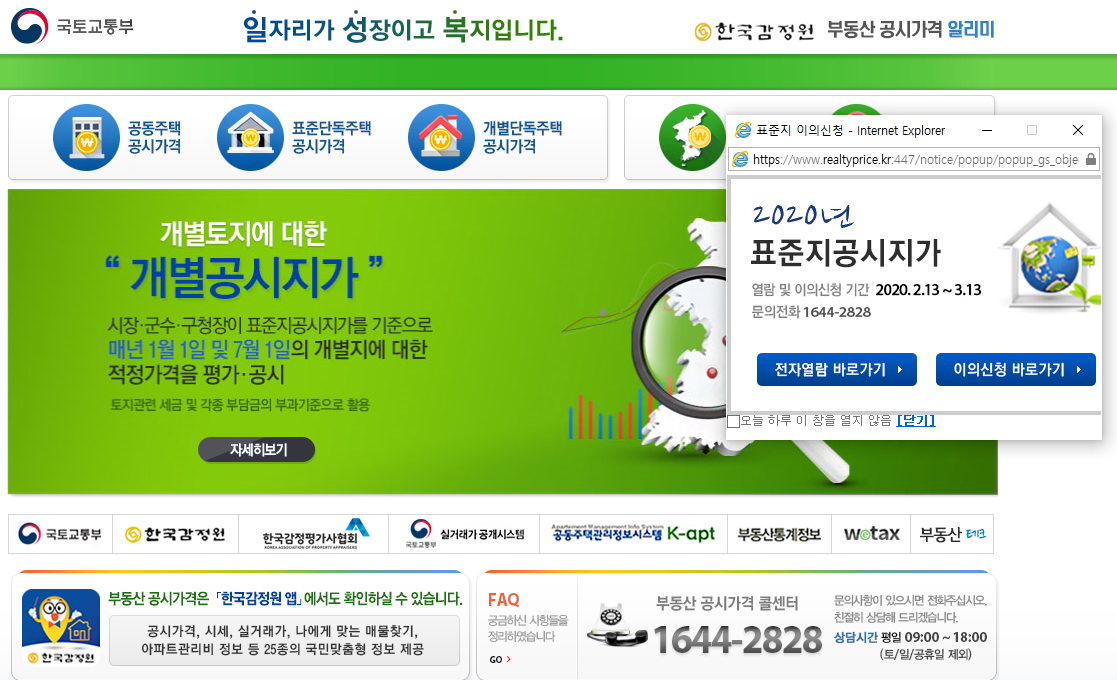 <2020년 개별공시지가 조회 부동산공시가격 알리미 바로가기>