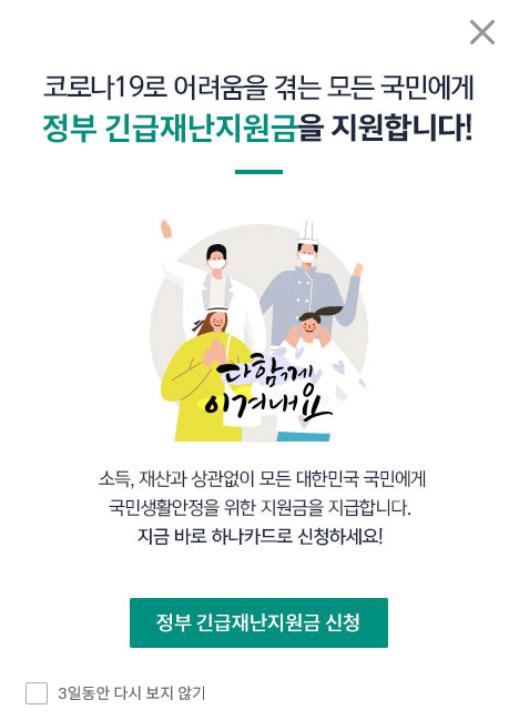 뭔가 했더니 요즘 정부에서 긴급재난지원금을 준다고 난리잖아요.