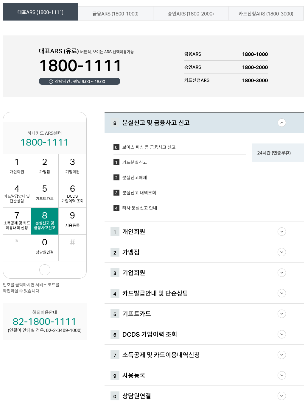하나카드ARS센터 전화번호는 1800-1111 번이고요.