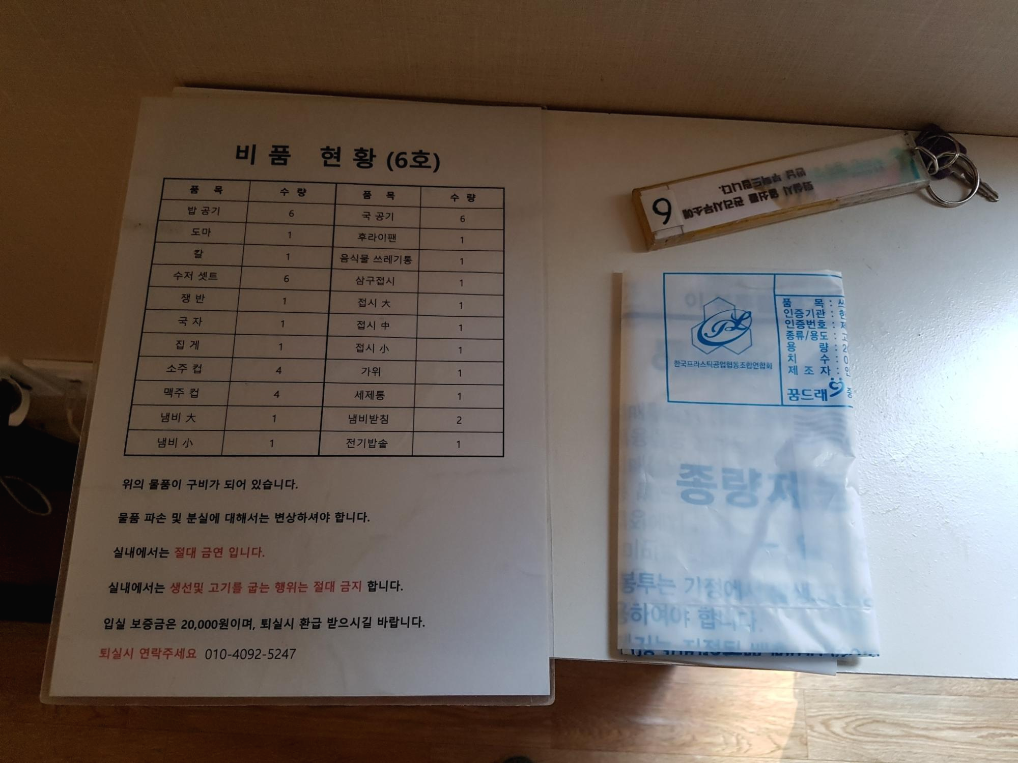 더불어 입실 전에 종량제봉투를 650원에 현금으로 사셔야 해요.^^