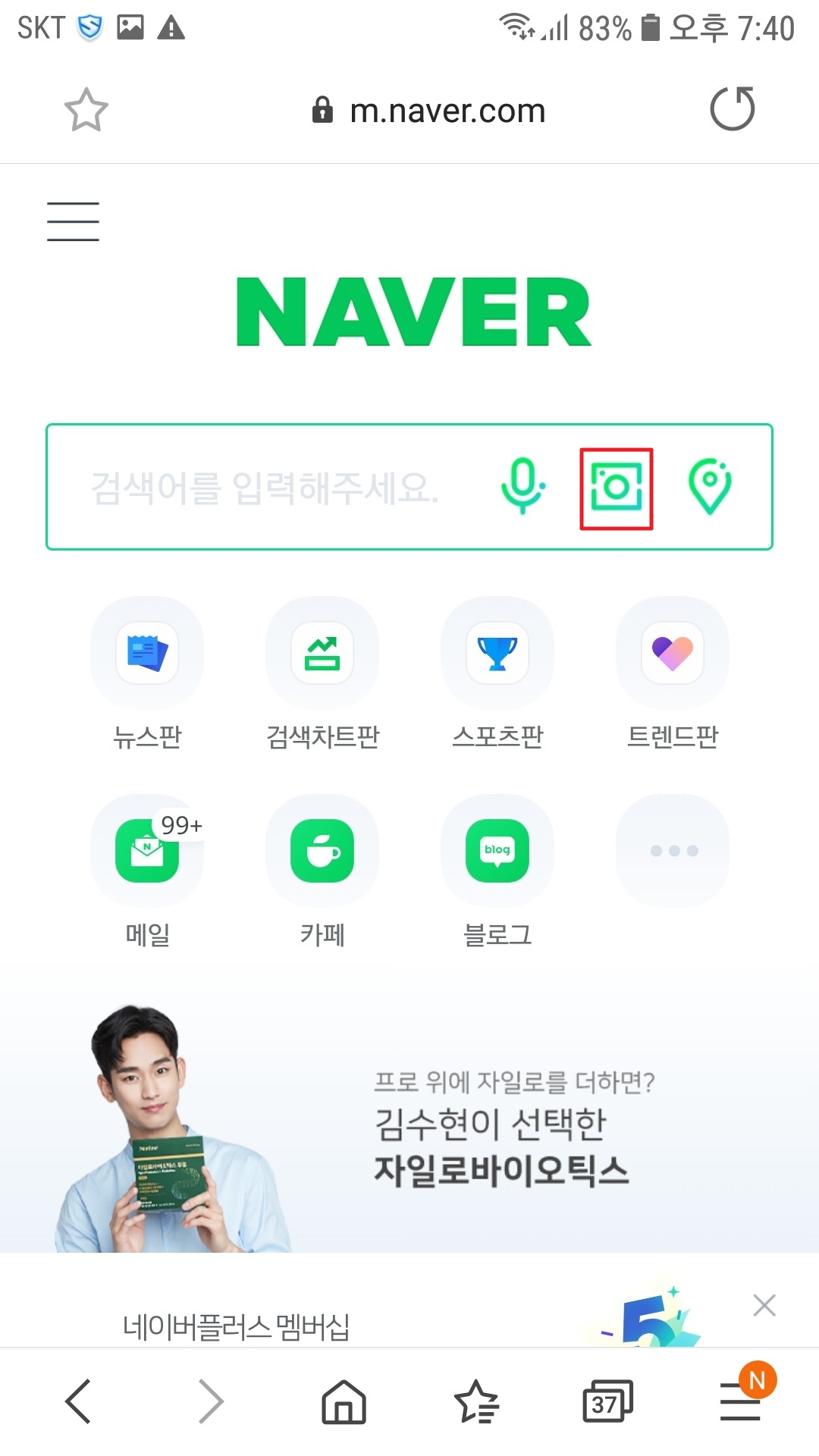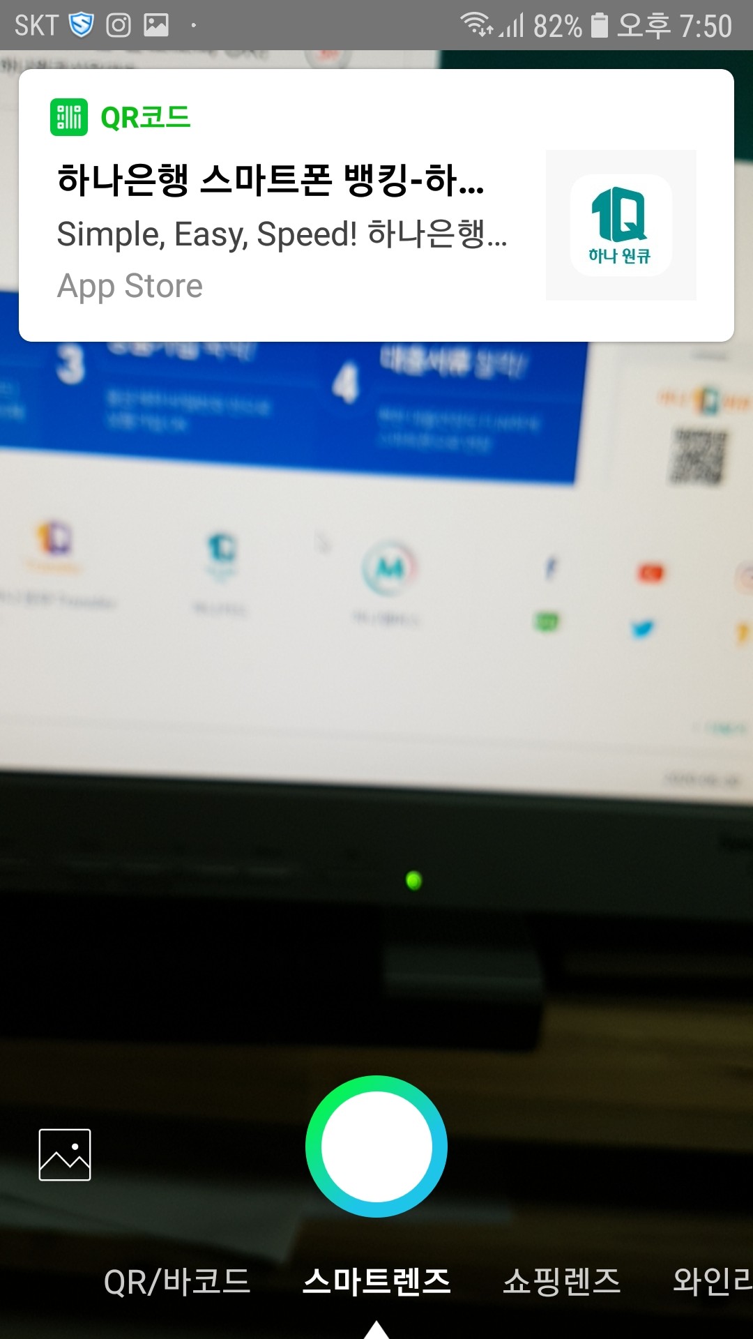 네이버검색창에 카메라 버튼을 누르고 큐알코드에 휴대폰만 가져가면 스캔이 돼서 해당 웹사이트나 정보에 접속이 가능하답니다.