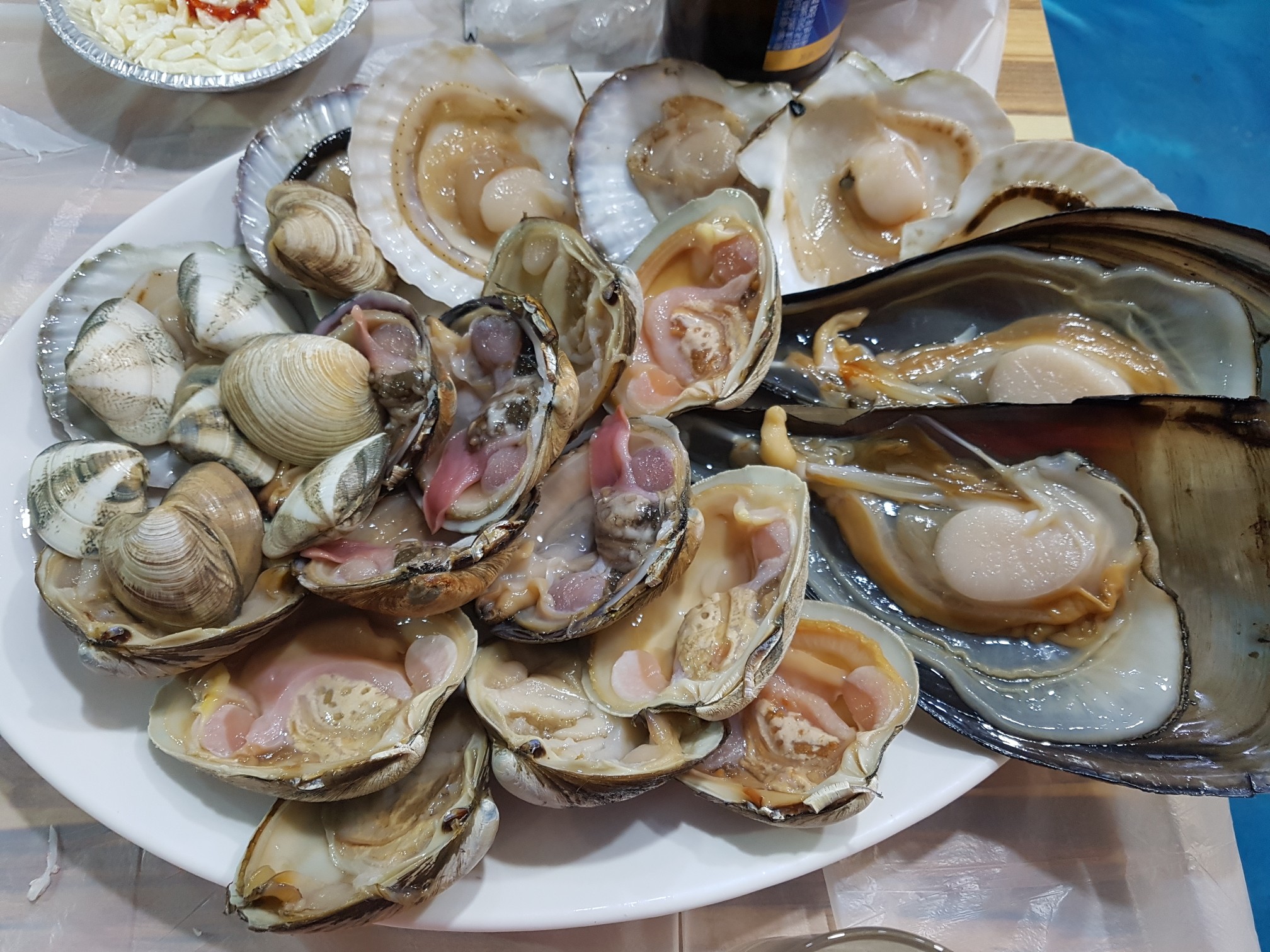 왕가리비와 여러 종류의 조개들이 모두 산화되는 순간입니다.ㅋㅋ