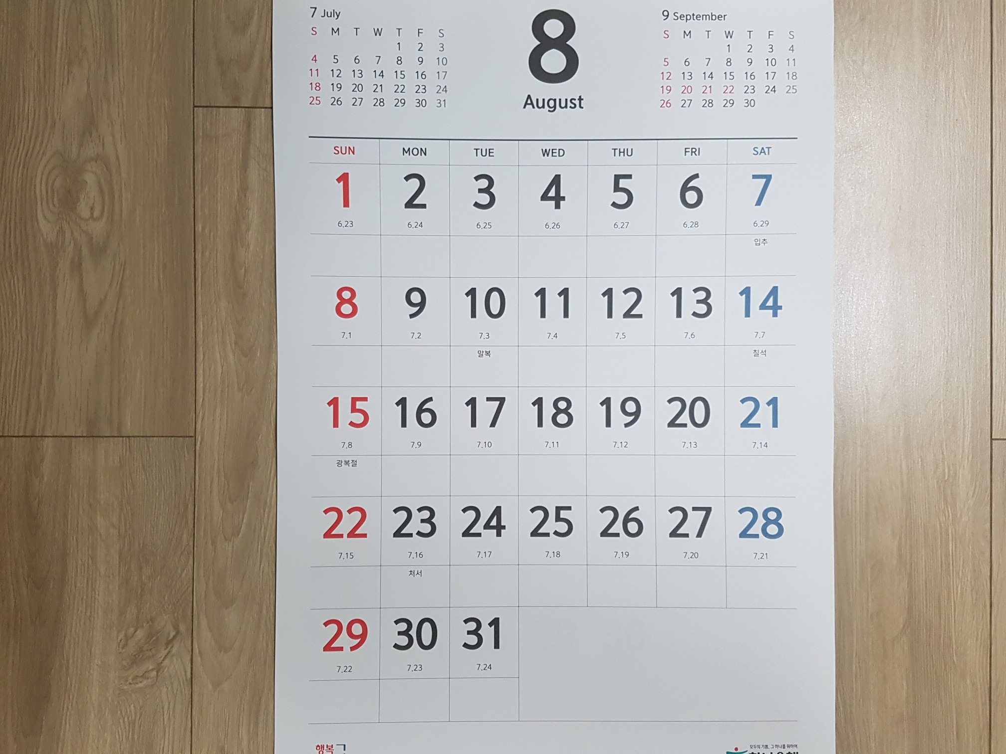 8. 15 광복절도 일요일이라서 우리를 시험에 들게 만드는 달입니다.ㅠㅠ