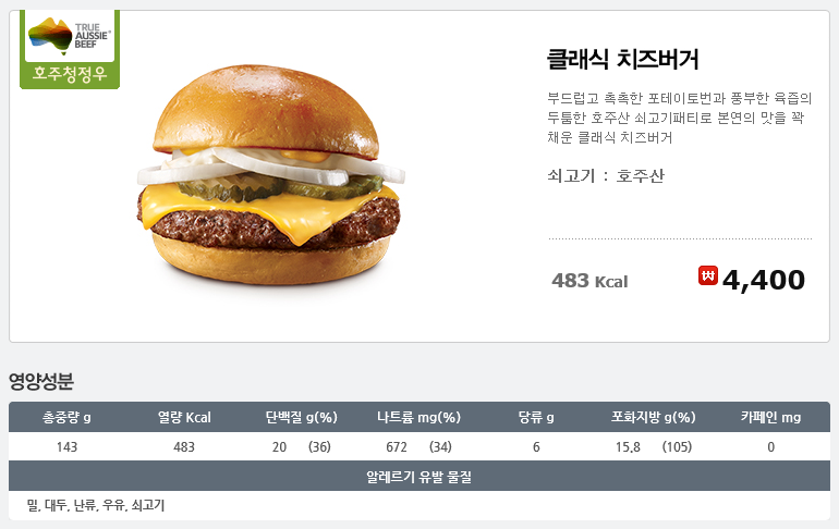 - 클래식 치즈버거