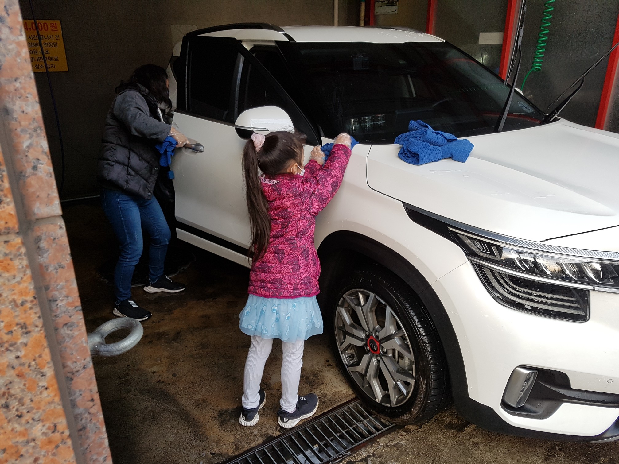딸래미도 세차하는 걸 좋아해서 데리고 왔는데요.