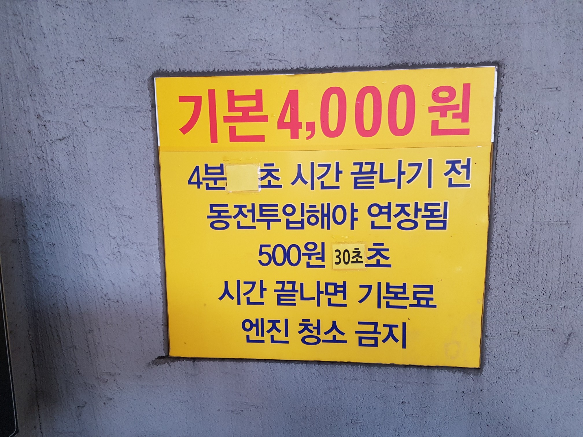 4천원을 넣으시면 시간은 4분이 제공되고요. 500원 동전을 투입하면 30초씩 연장되는 시스템입니다.