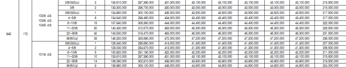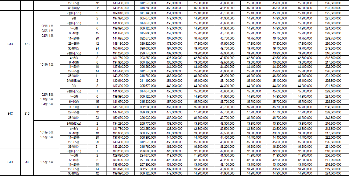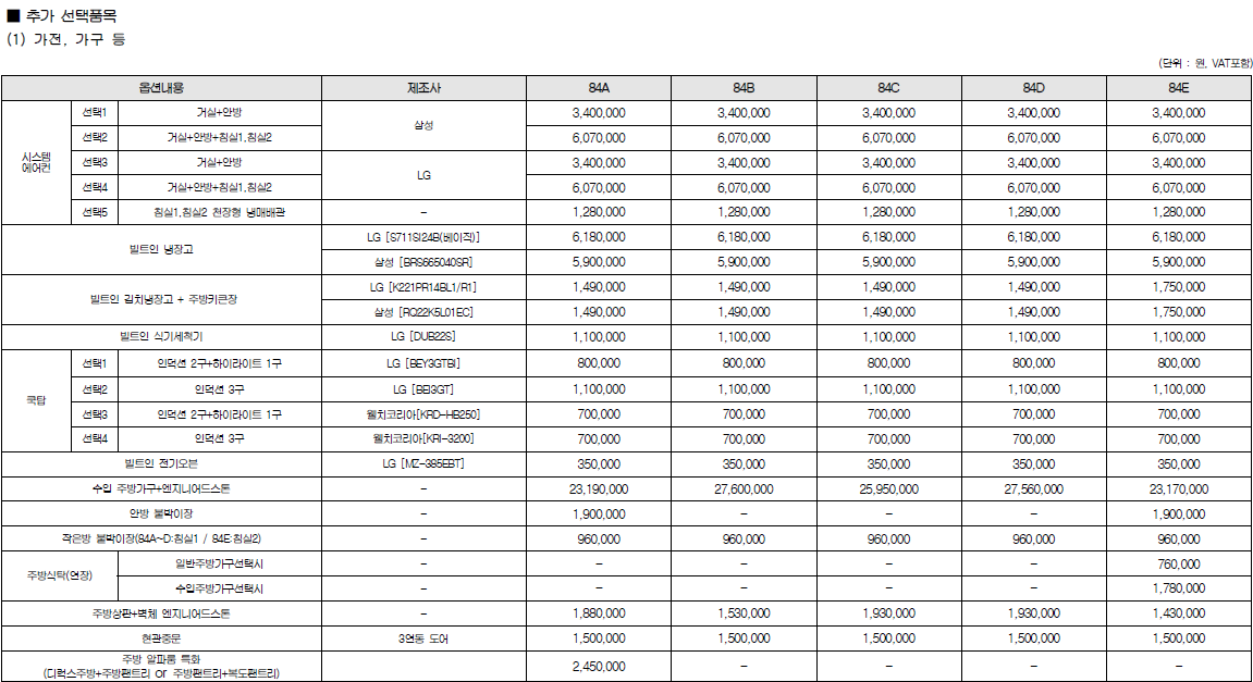 전용면적 84㎡로 구성된 아파트는 A, B, C, D, E타입 등 5가지 타입으로 평면을 구성했습니다.