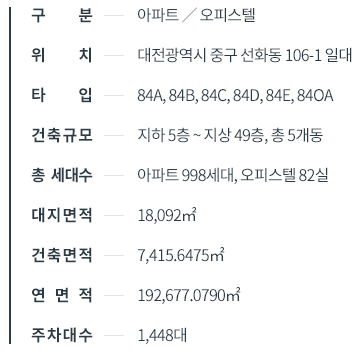 - 대전 선화동 코오롱하늘채 주택형별 공급면적 및 공급세대수 안내