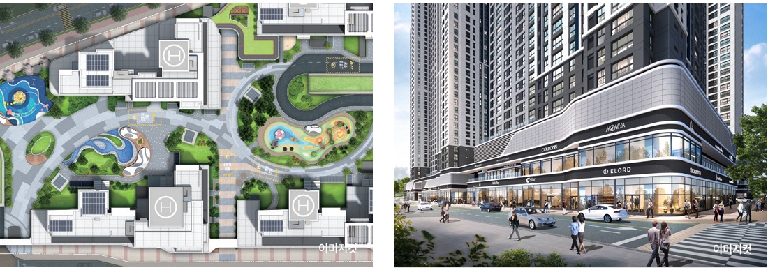 더불어 기존 주상복합의 단점을 극복한 최신 설계도 적용되는데요. 먼저 단지 내 지상에 차가 없는 공원형 설계와 함께 조경ㆍ휴식공간을 조성할 계획에 있습니다.