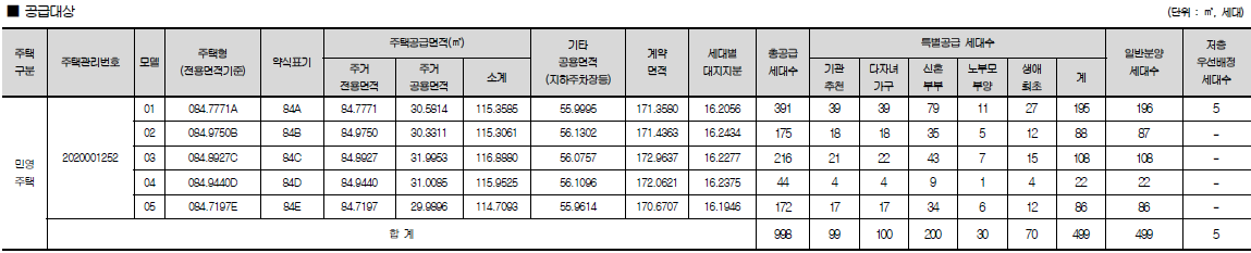 특별공급은 △생애최초 70가구 △신혼부부 200가구 △다자녀가구 100가구 △기관추천 99가구 △노부모 부양 30가구 등 총 499가구로 특별공급에도 청약이 몰릴 예정입니다.