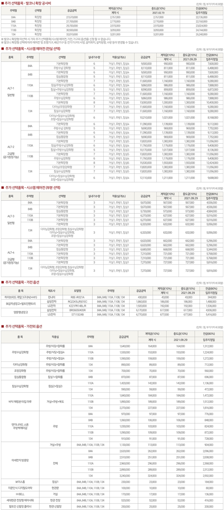 - 발코니 확장 공사비 및 유상옵션 안내