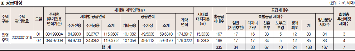 - 동성로 sk리더스뷰 주택형별 계약면적 및 공급세대수 안내