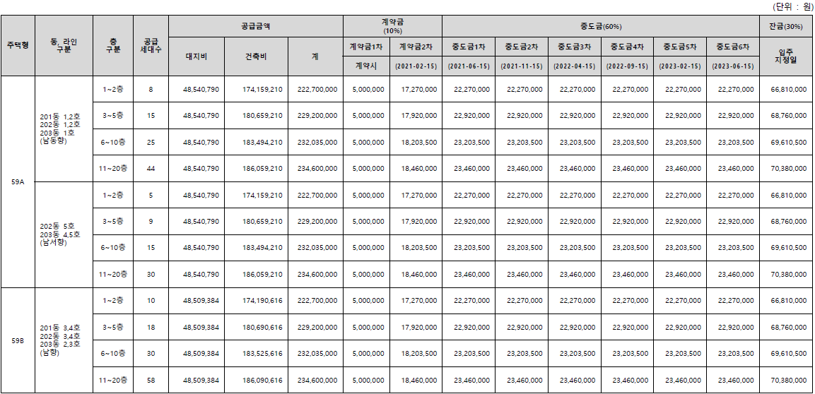 계약금 10%, 중도금 60%, 잔금 30% 납부일정으로 구성돼 있고요.