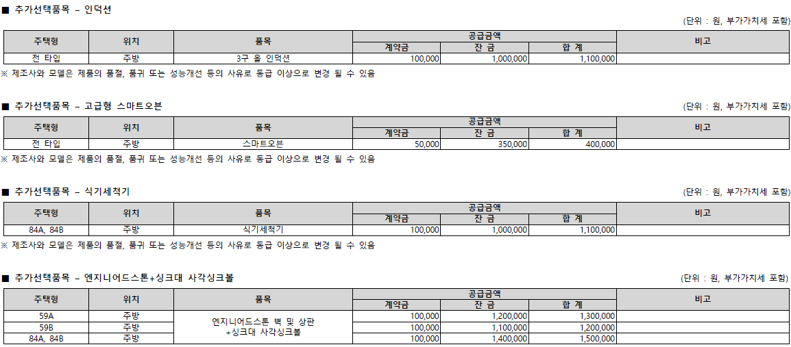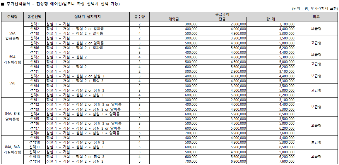 발코니 확장 공사비는 무상(분양가 포함)입니다.