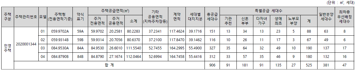 - 선교2차 우방아이유쉘 주택형별 계약면적 및 공급세대수 안내
