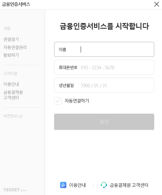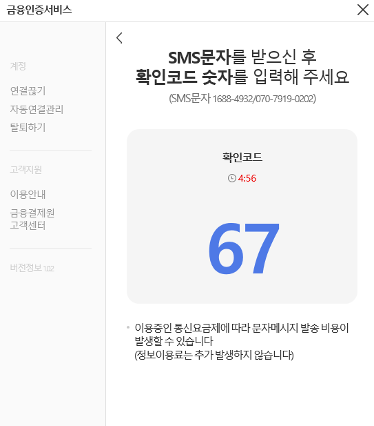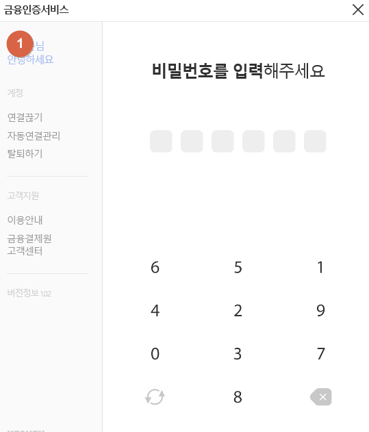 즉, 금융인증서비스는 인증서비스 비밀번호와 휴대폰 인증 두개의 프로세스를 하시면 로그인 할 수 있는 것입니다.