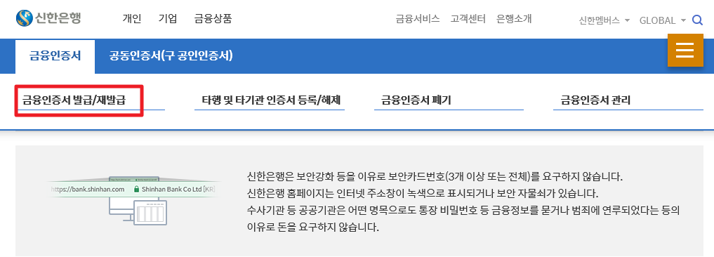 오늘은 신한은행 금융인증서 발급 방법에 대해서 알아보려 합니다.
