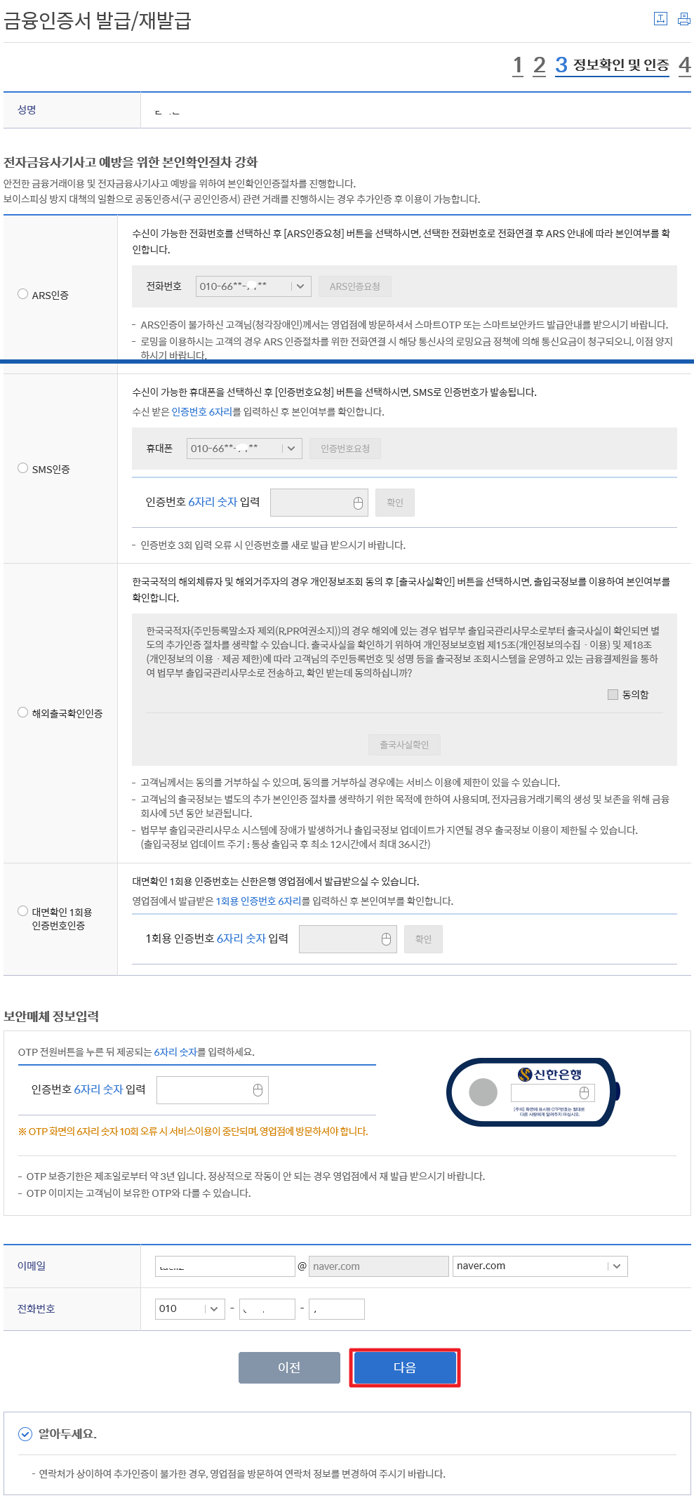 본인확인절차 강화로 휴대폰(ars)이나 문자 인증이 필요하고요, otp 등 보안매체 비밀번호도 필요하답니다.