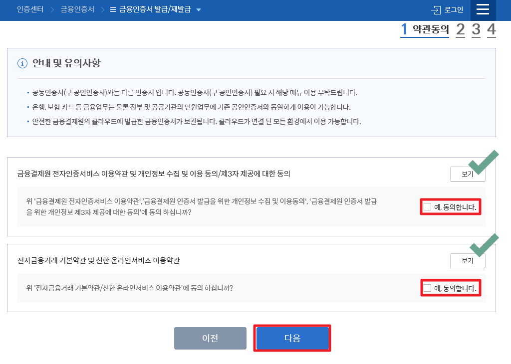 첫번째 단계가 약관에 동의하셔야 합니다.