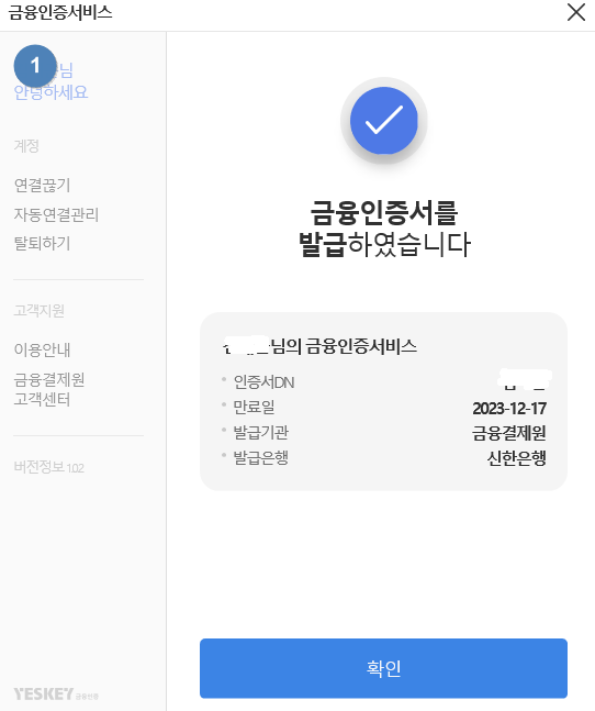 이렇게 해서 금융인증서를 발급 받게 되는 것이죠.