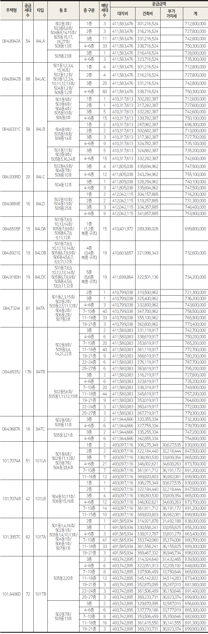 - 힐스테이트리슈빌강일 주택형별 공급세대수 안내