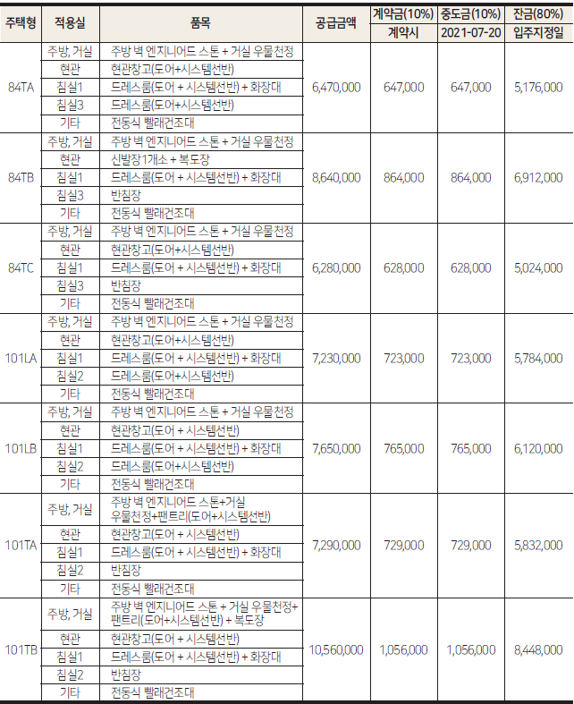 더불어 각 타입별로 드레스룸, ㄷ자형 주방구조, 알파룸(101㎡), 복도펜트리(101㎡) 등의 설계를 적용해 공간 효율을 최적화시킨 것도 이 단지의 매력 포인트랍니다.