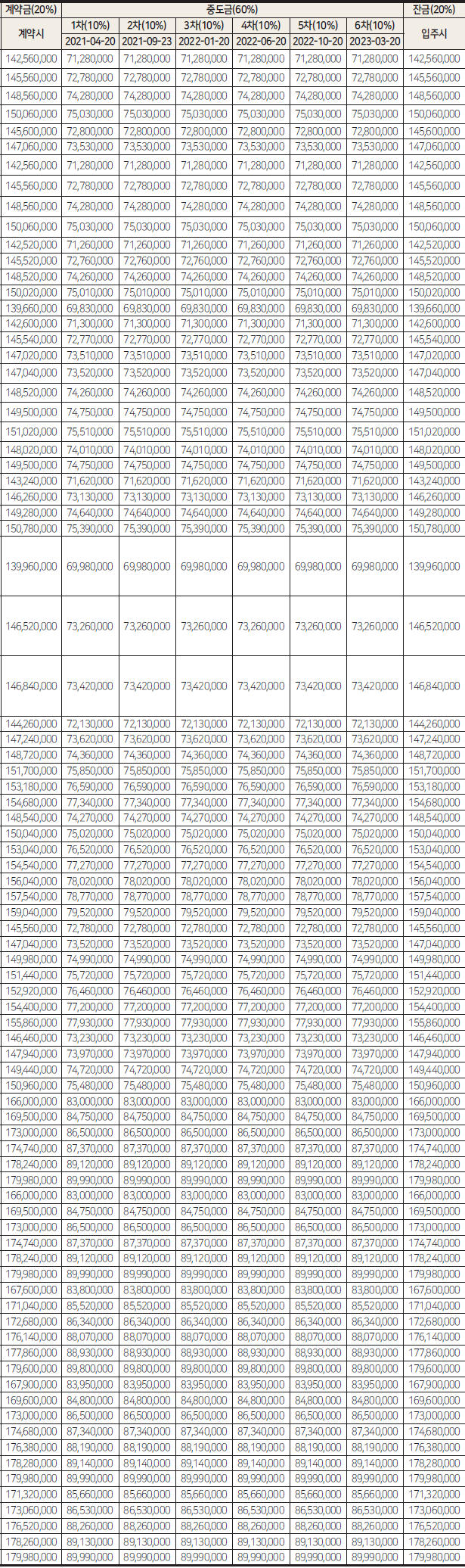 계약금 20%, 중도금 60%, 잔금 20%로 구성돼 있고요.