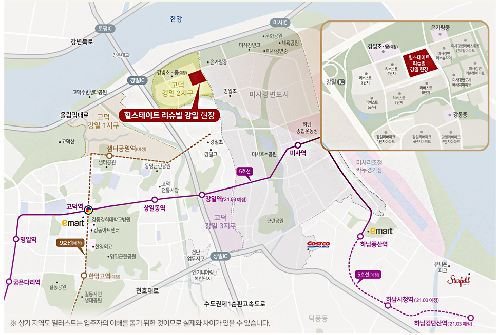 - 고덕강일 공공주택지구5블럭 힐스테이트 리슈빌 입지환경 및 프리미엄 정보