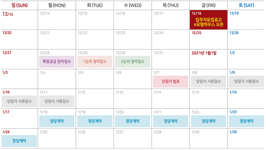 특별공급 12월 28일, 1순위 청약 12월 29일, 2순위는 12월 30일에 청약접수를 받고요.